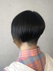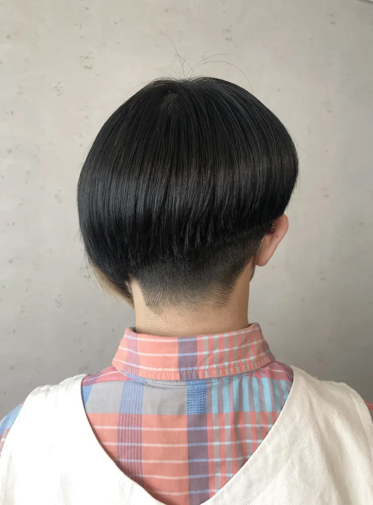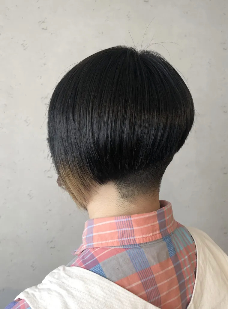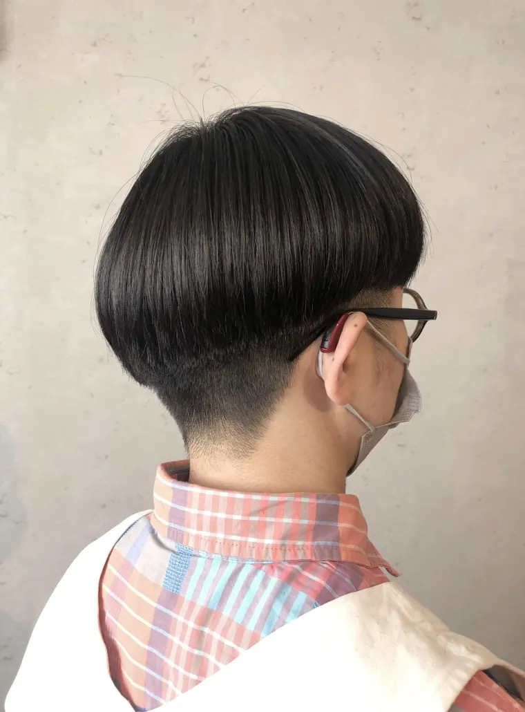 アシンメトリー。右側はツーブロック、左側は数ヶ月前のカラーを活かして長めにカット。
